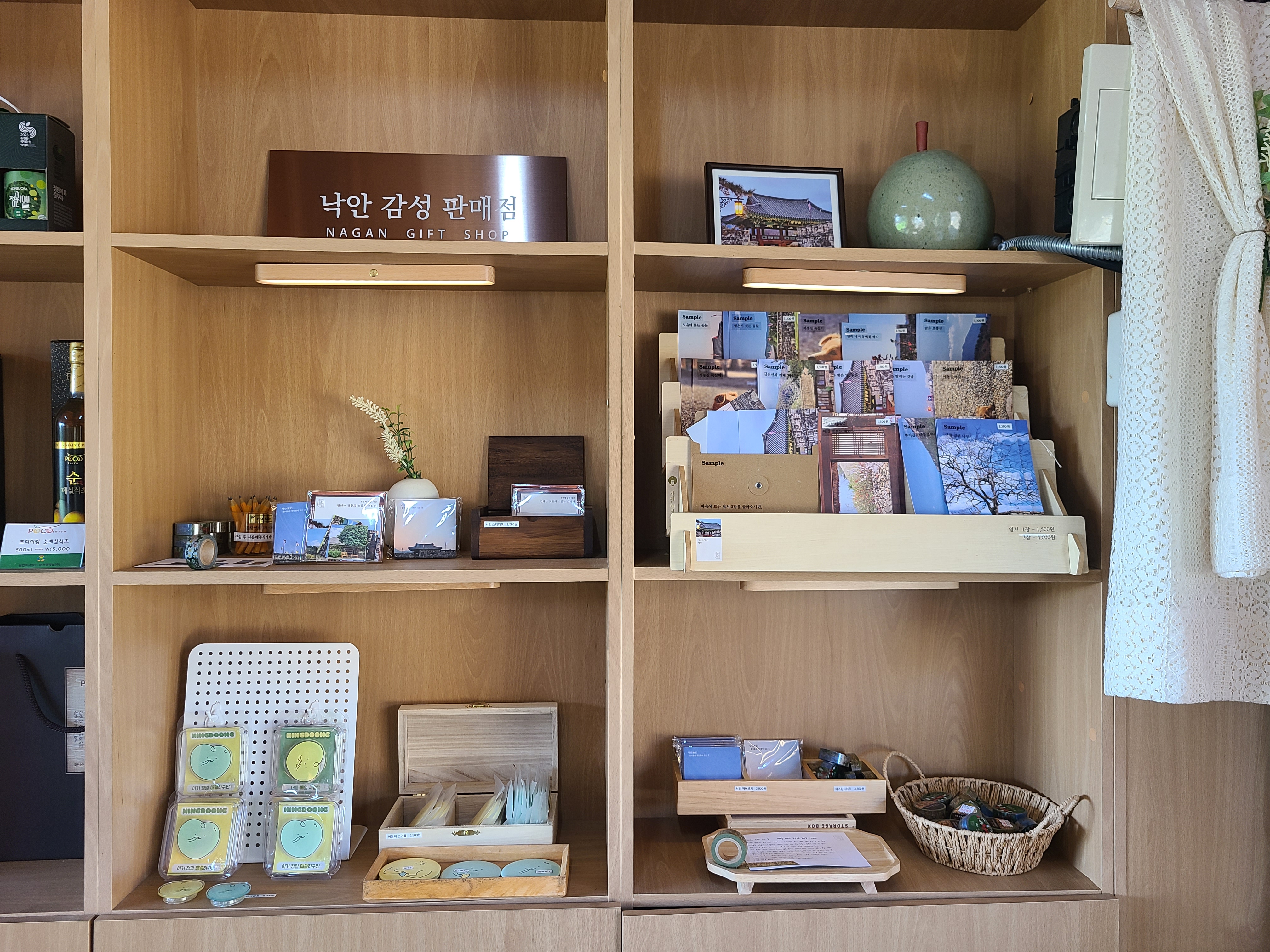 기념품을 주문할 수 있는 공간도 주문하는 곳 바로 옆에 준비되어 있어서, 구경하는 재미가 쏠쏠했다. 카페 내부가 넓지는 않지만 오밀조밀 한옥 느낌의 공간이라 그런지 마음이 편안해졌다.