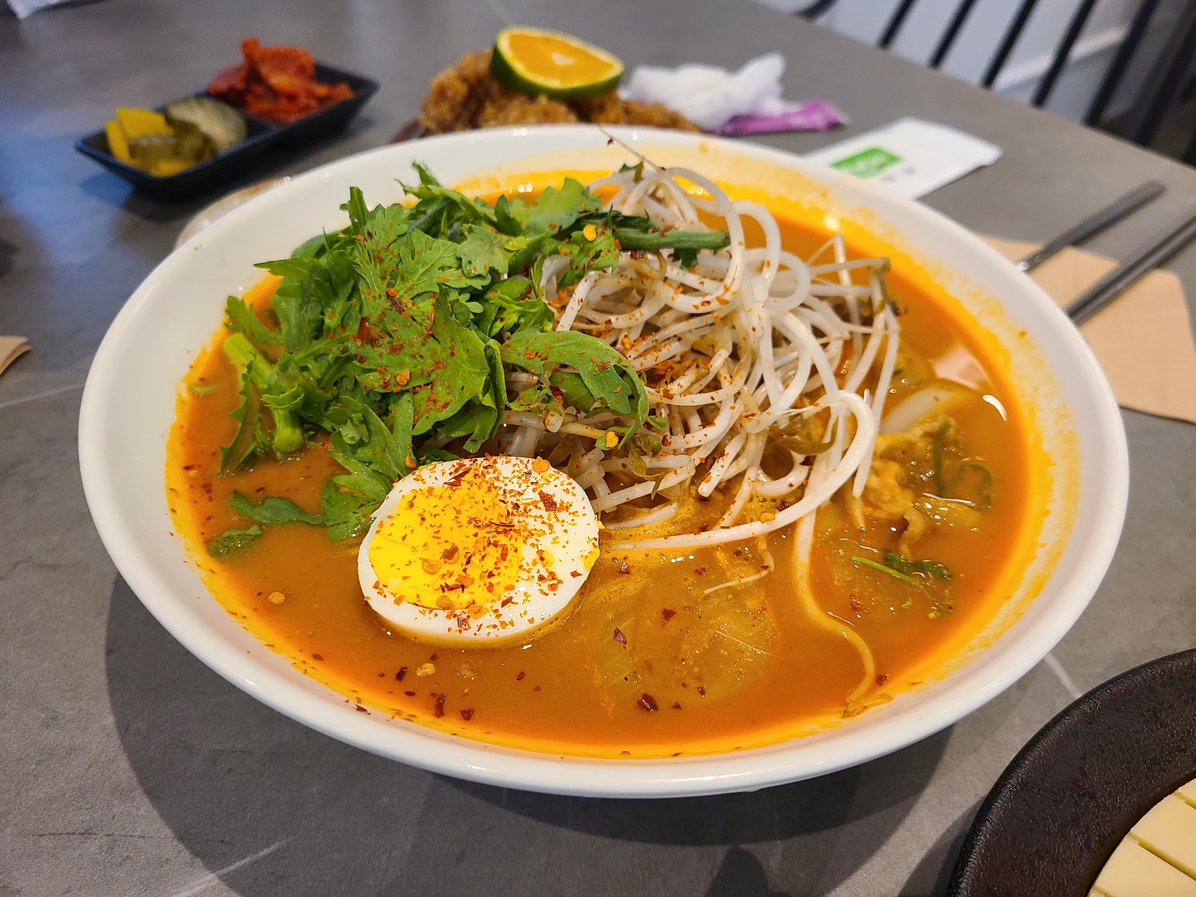 날씨가 이제 꽤 쌀쌀해져서 국물 하나 있으면 좋겠다. 싶어 차돌라멘을 주문했다. 개인적인 의견으로는 꽤 칼칼한 맛인지라 매운걸 잘 못먹는 분들은 다른 메뉴를 조심히 권장해 본다. 원래 국물류를 먹지 않는 1인이기도 하지만, 매운 요리도 잘 못 먹는 편이라 면만 2번 떠먹었다 흑ㅠㅠ 그래도 충분히 '아 매워..!'를 느낄 수 있었다.