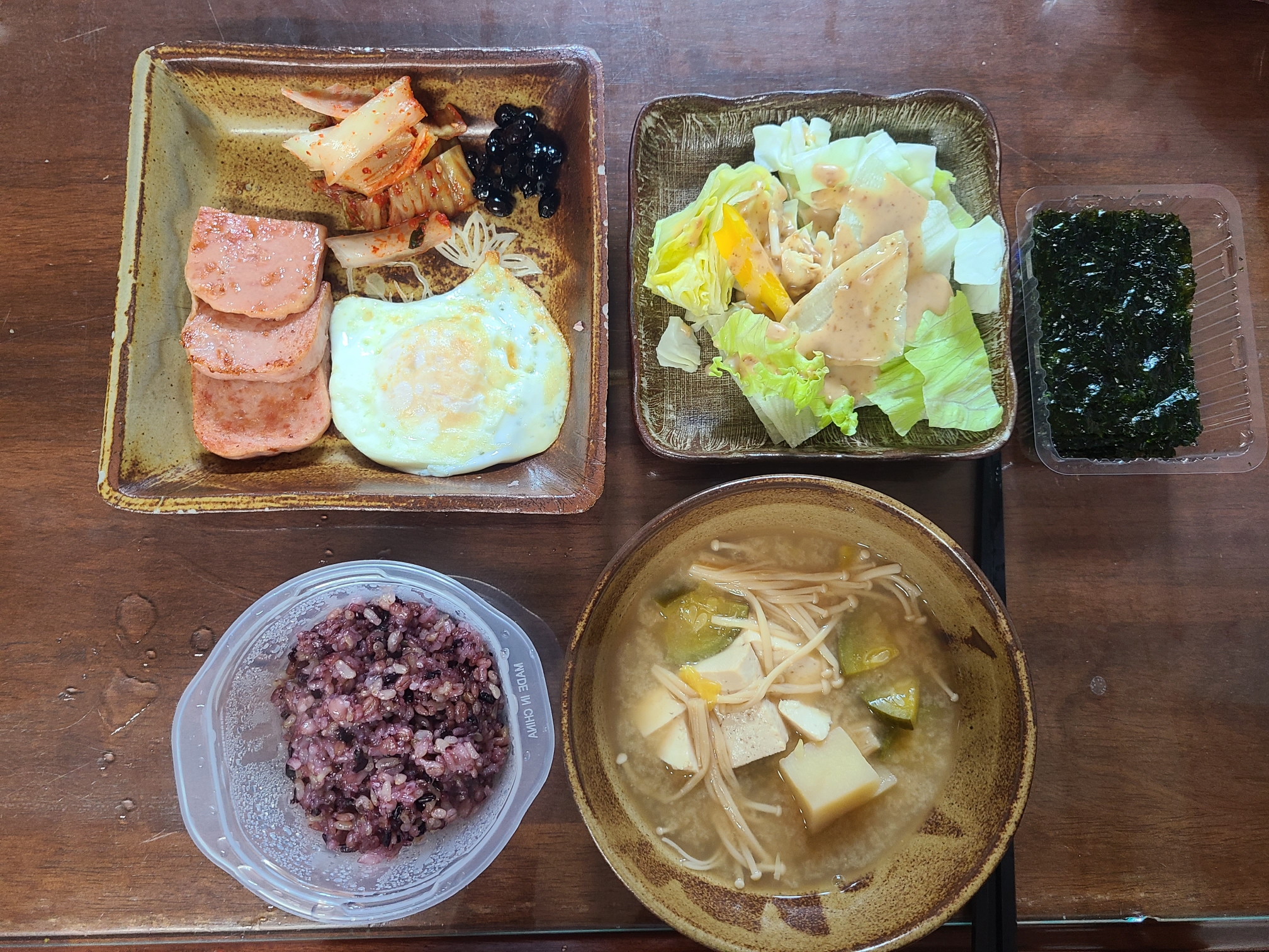 11월 마지막 집밥 사진. 스팸+양배추 조합은 스팸의 짠맛을 잡아줌과 동시에 건강하게 스팸을 먹는 기분을 선물한다. 드디어 된장국이 끝났..어..! 다음 된장국은 텀을 조금 두고 끓여먹어야지..ㅠㅠ 아주 넉넉하게 먹어서 말이다..!