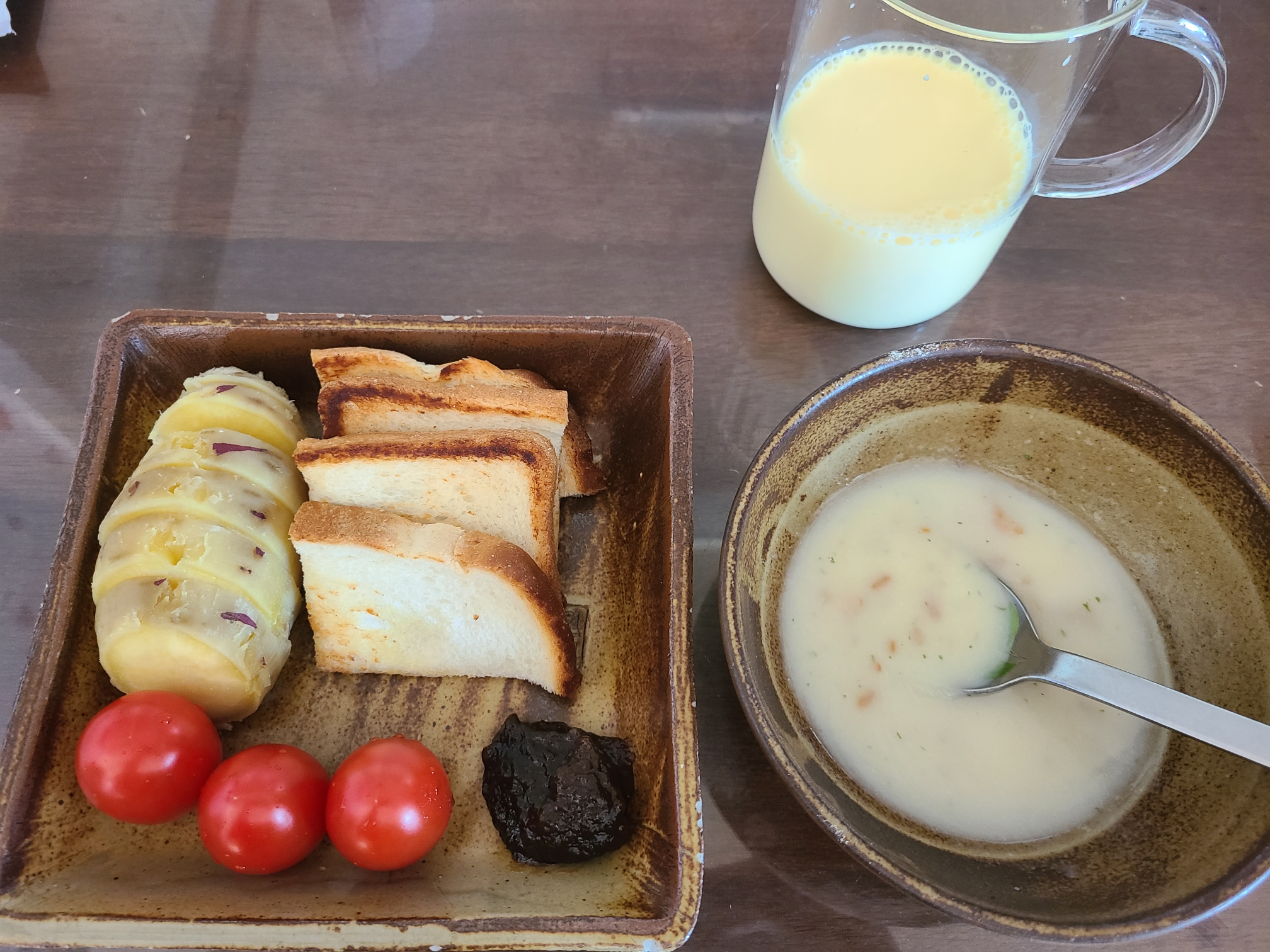 간단하게 브런치 느낌으로다가(?) 먹어본 점심. 빵 조금 데우고, 고구마, 스프가 곁들어진 한 끼다. 이렇게만 먹어도 아주 든든하니 좋았다. 나중에 내 주방에는 내가 원하는 예쁜 식기류로 이렇게 밥을 챙겨먹고 싶다. 하얀색? 이 좋으려나..
