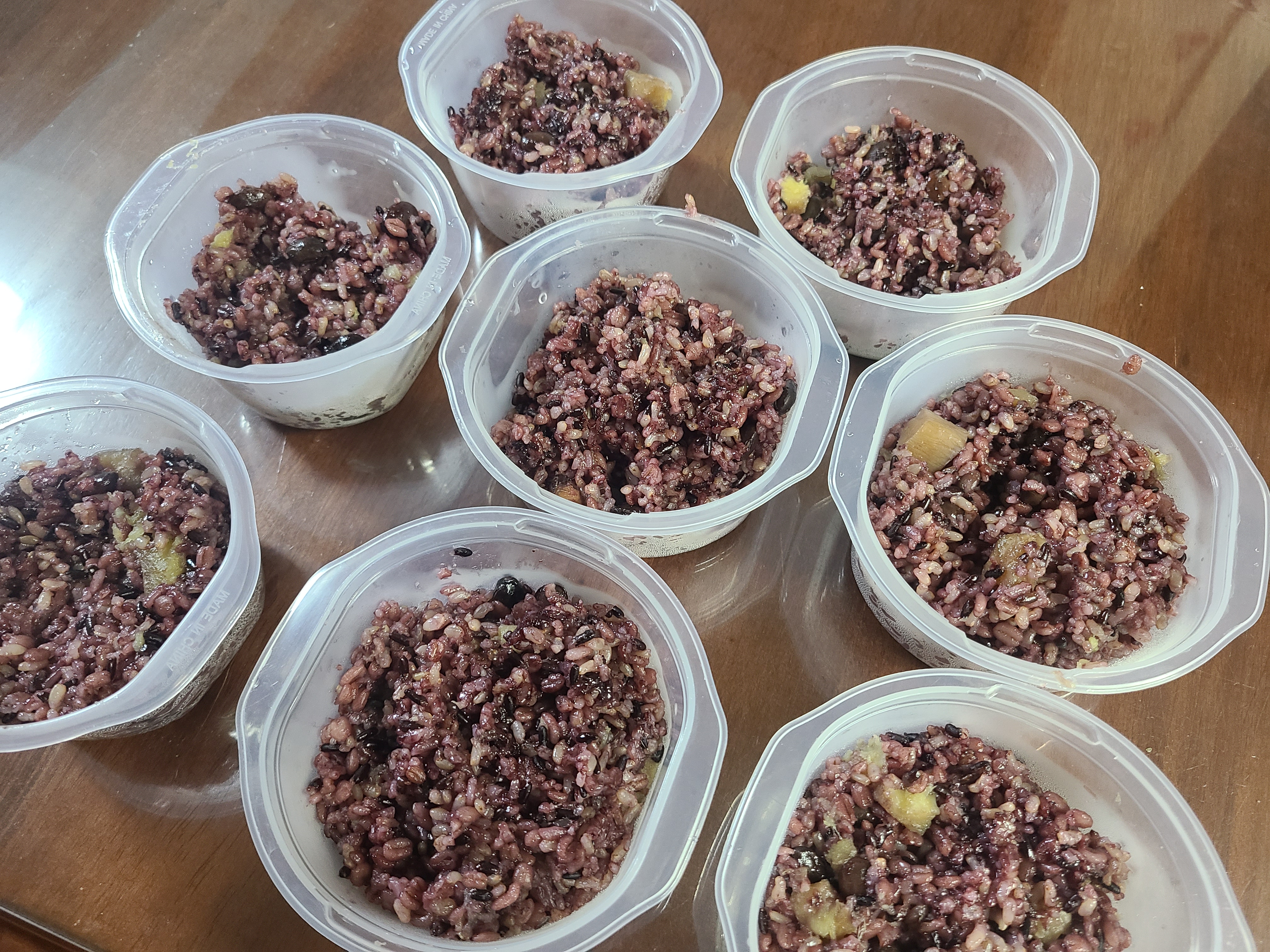 고구마밥 완성! 윤기가 아주 마음에 든다. 잡곡이랑 콩이랑 이것저것 다 들어가 있어서 밥만 먹어도 아주 든든할 예정이다. 소분해두고 열심히 하나씩 꺼내먹어야지.