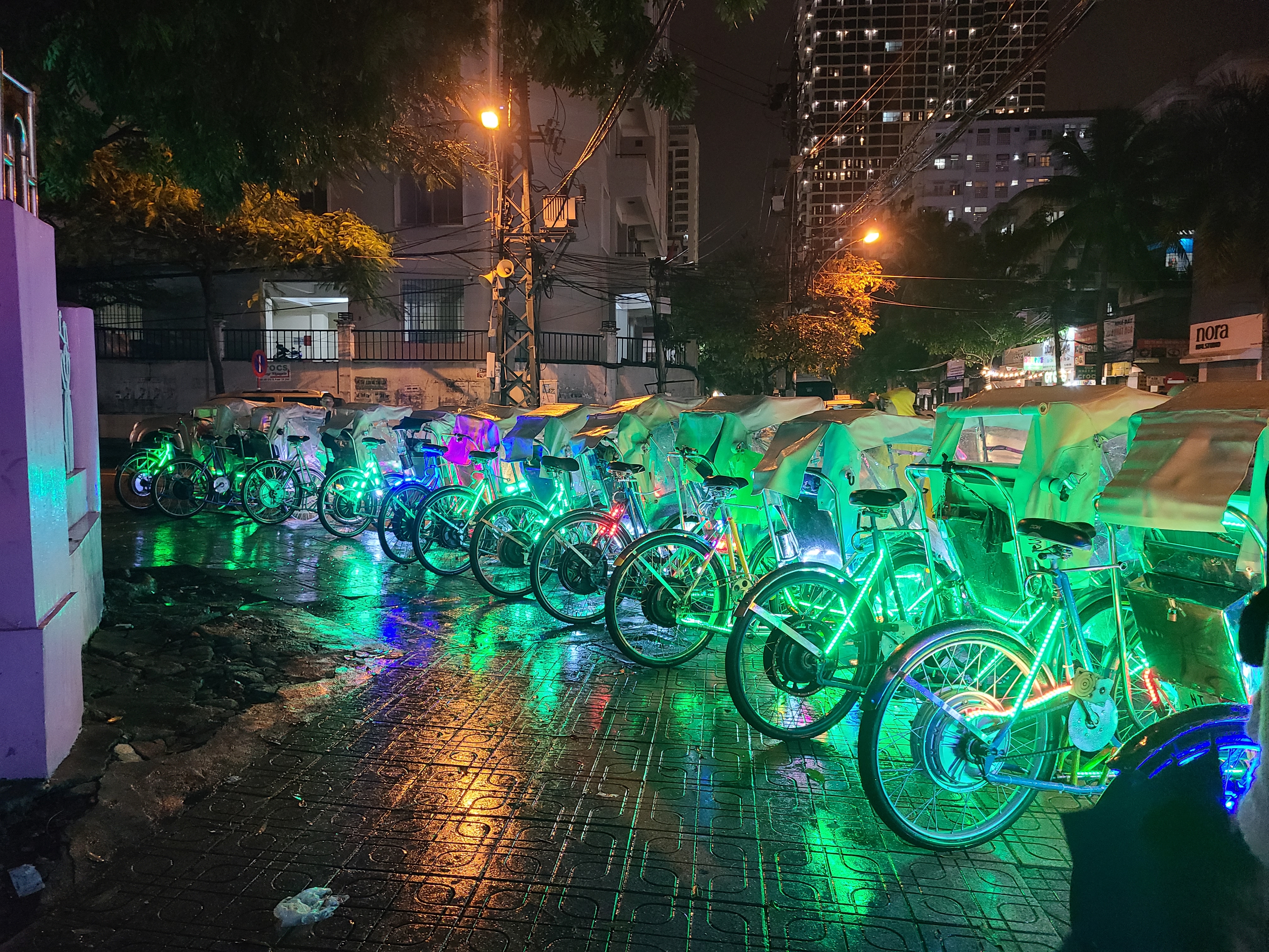 저녁 먹고 나서 씨클로 타고 시내를 한바퀴 도는 시간을 가졌다. 번쩍이는 자전거가 꽤 부담스럽긴 했는데...! 그래도 뭔가를 타고 구경할 수 있어서 너무 좋았다. 비가 오는 것만으로 오히려 분위기가 낭만적이었다구. 계속 할머니 챙기고 부축하느라 온전히 내 시간을 즐기질 못했는데, 자전거에 있는 그 혼자만의 시간이 어쩌면 간절했던 것 같기도 하다.