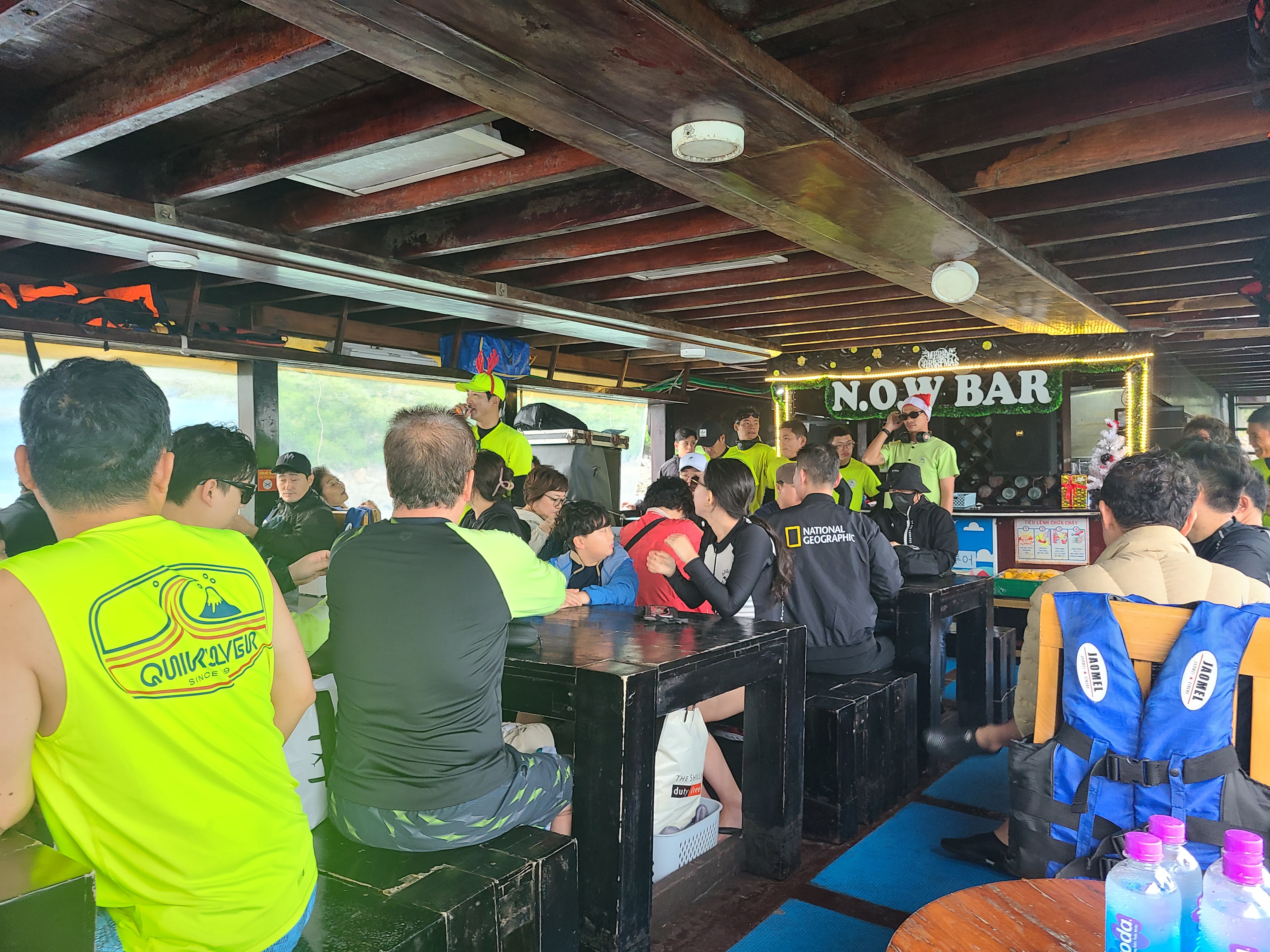 호핑투어 기다리는 중. 우리 팀만 타는 게 아니라, 다른 팀이랑 같이 맞춰서 들어가는 것 같았다. 할머니랑 동생이 수영복을 준비하지 않아서 걱정했는데, 앞에 수영복을 팔고 있어서 다행이 구입하고 갈 수 있었다. 심지어 싸게!(물론 한국보다) 수영복 하나에 우리나라 돈으로 5,000원 정도의 가격에 살 수 있었다.