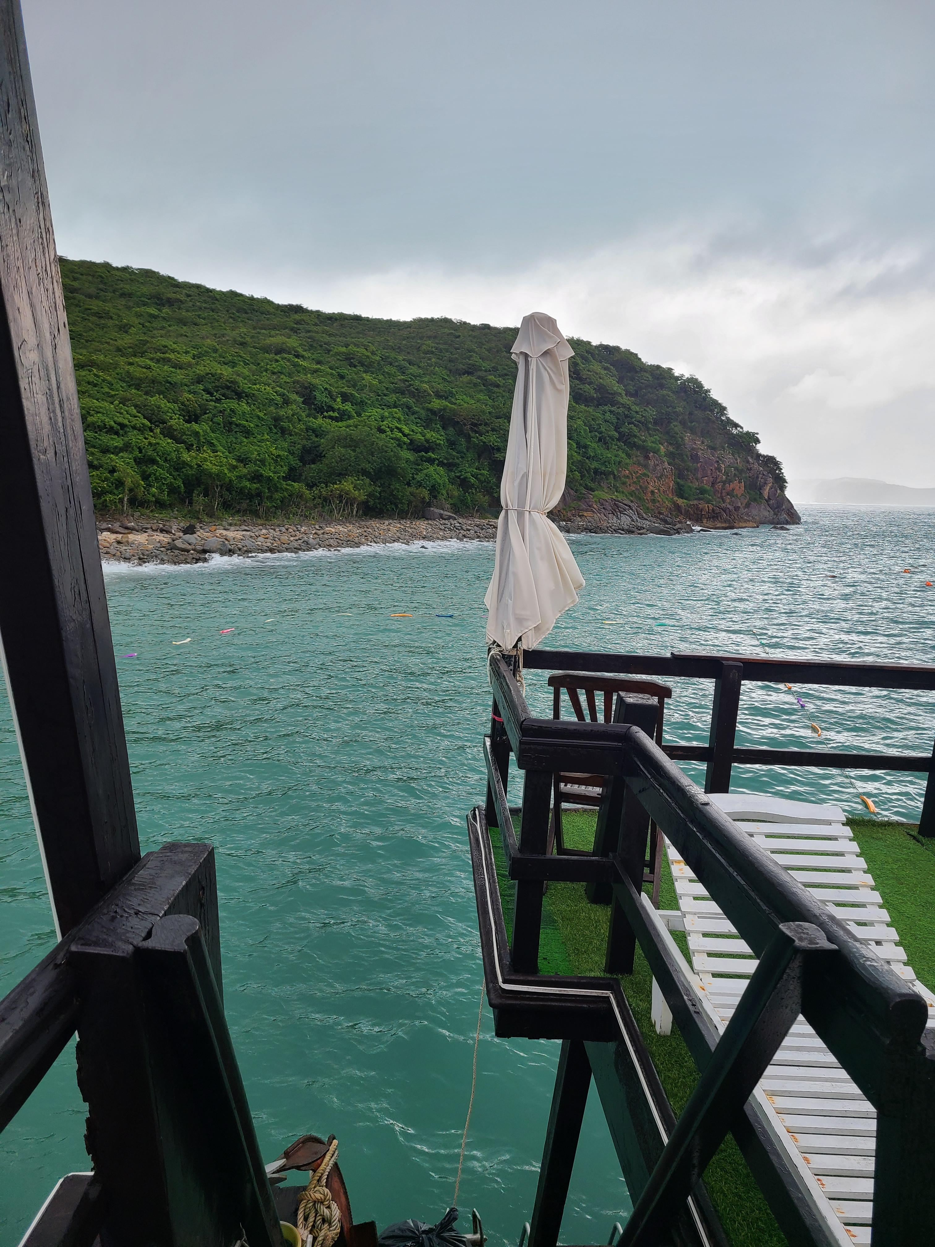다음팀이 들어오는 중. 우리가 저 배를 타고 점심을 먹으러 가야한다. 그래도 여기 우기는 계속 이어지는 게 아니라, 잠깐 내리고, 다시 그치고를 반복했다. 덕분에 잠시 해도 보고!