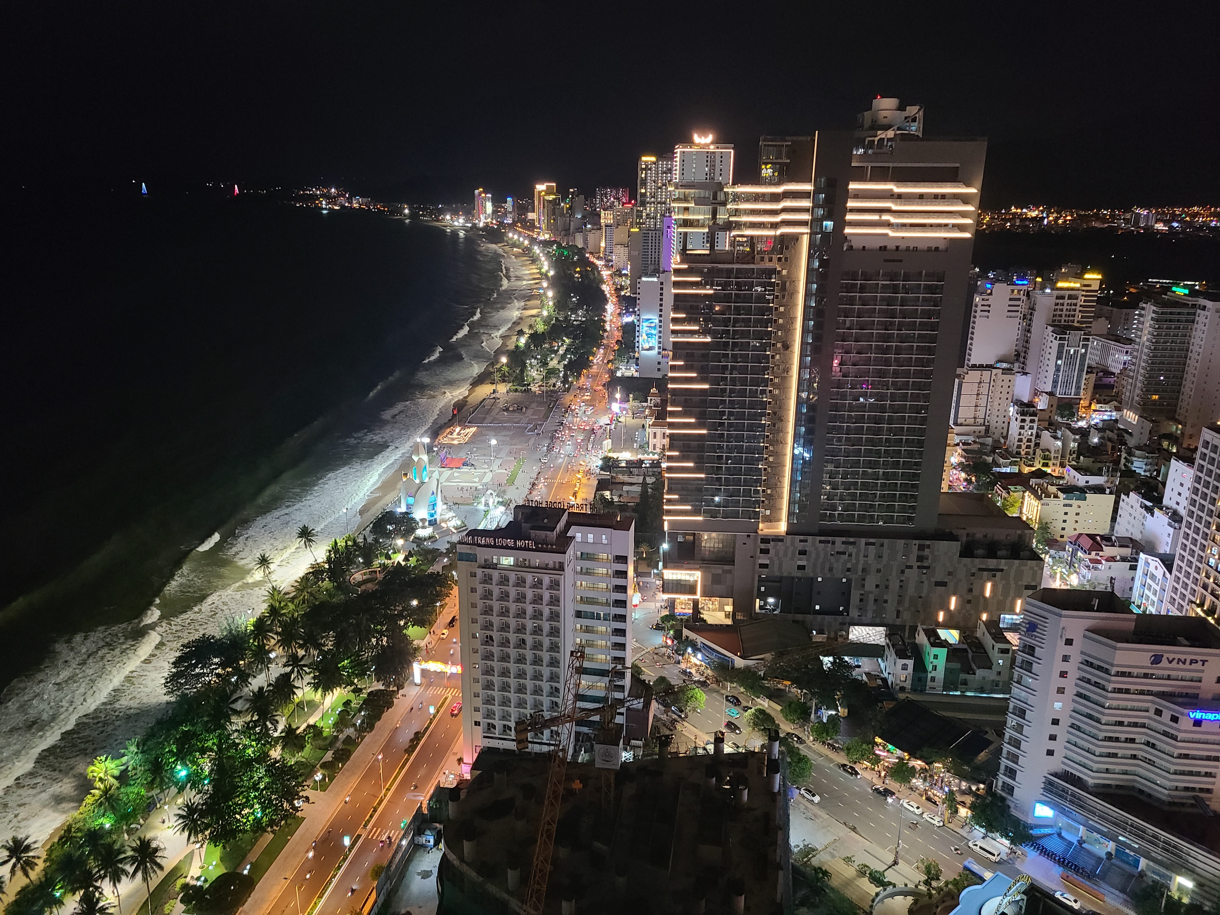 마지막으로 나가기 전에 야경 한번 찍어줬다. 세상에.. 우리 숙소도 뷰가 너무 좋지만, 여기 야경뷰도 정말 예술이었다. 나트랑에서의 마지막 밤. 반짝이는 야경 덕분에 너무 만족스러운 마무리였다.