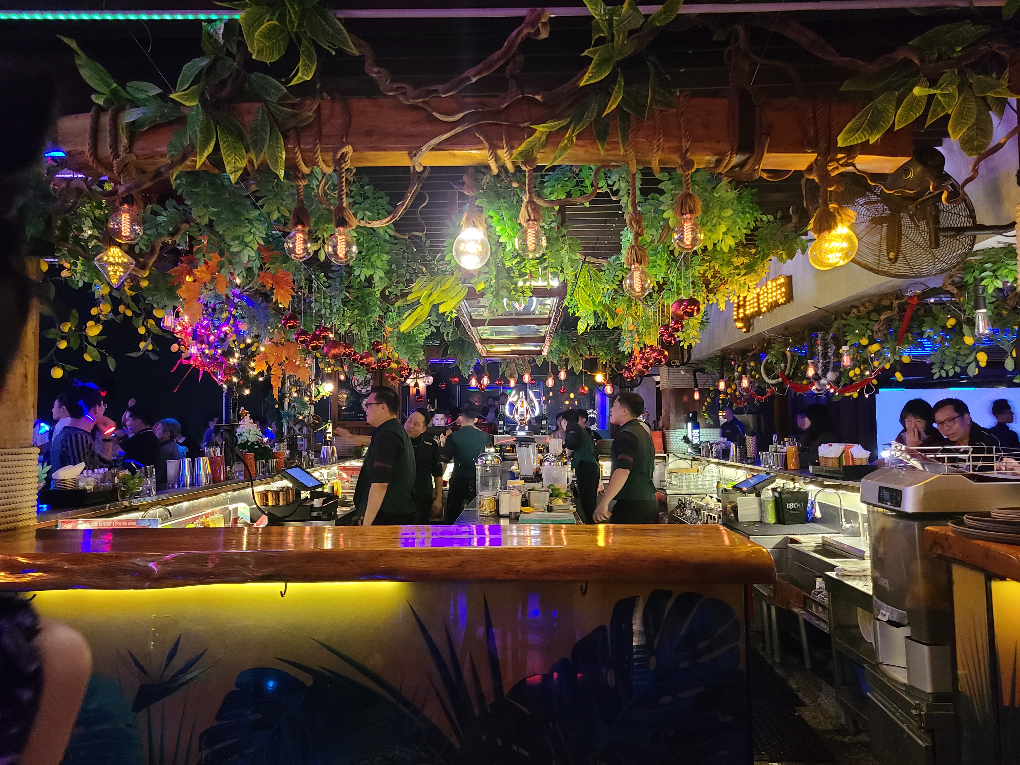 루프탑바 내부는 이렇게 생겼다. 조명이 아주 휘황찬란하달까. 여기는 대부분 중국인, 한국인 여행객이 많이 오는 곳 같았다. 여기저기를 다 둘러봐도 다 익숙한 사람들이야(?)