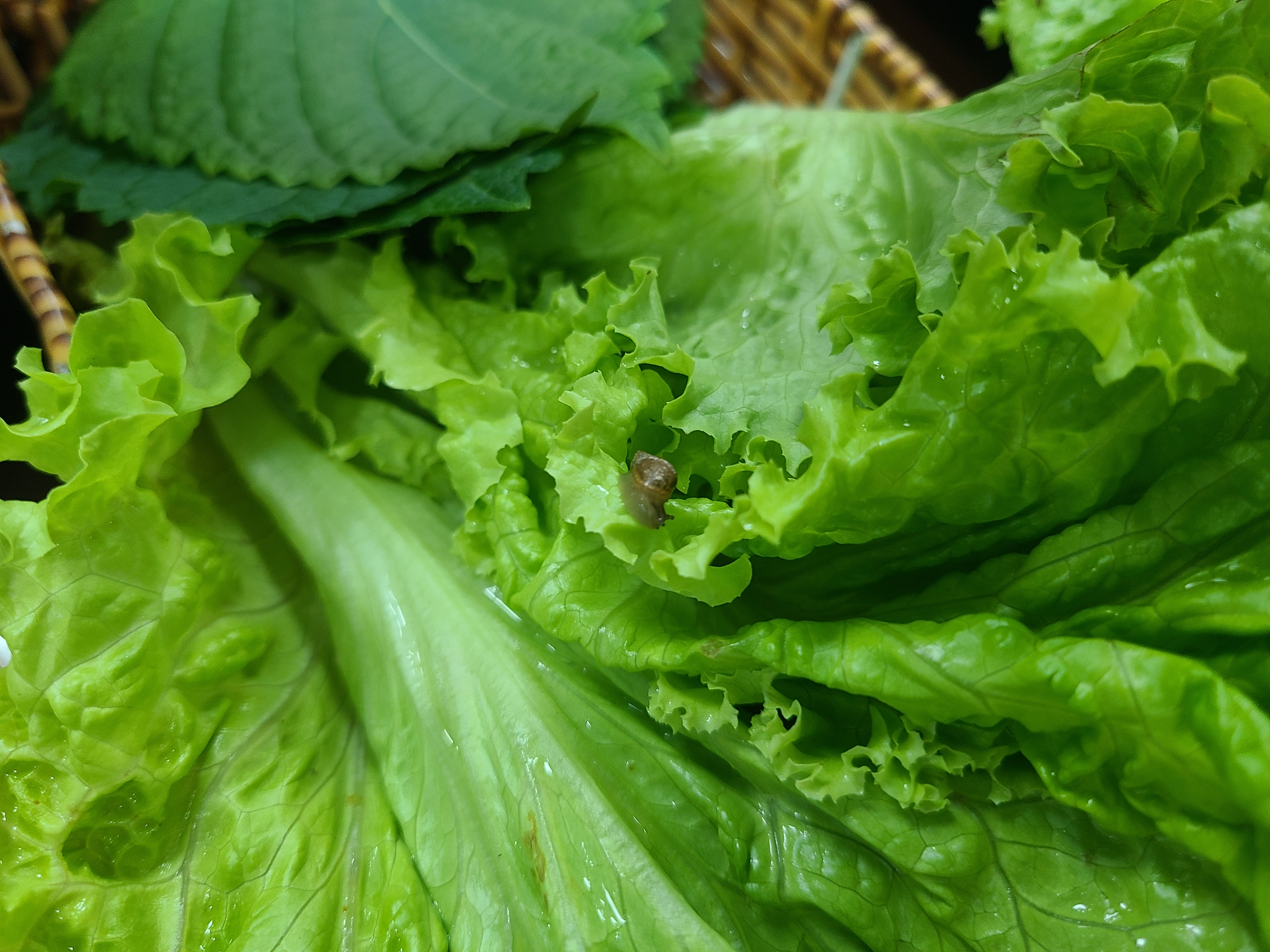 얼마나 친환경이나면 귀여운 달팽이가 상추 속에 숨어있었다. 심지어 꿈틀꿈틀 기어가고 있었다구. 하하하핳