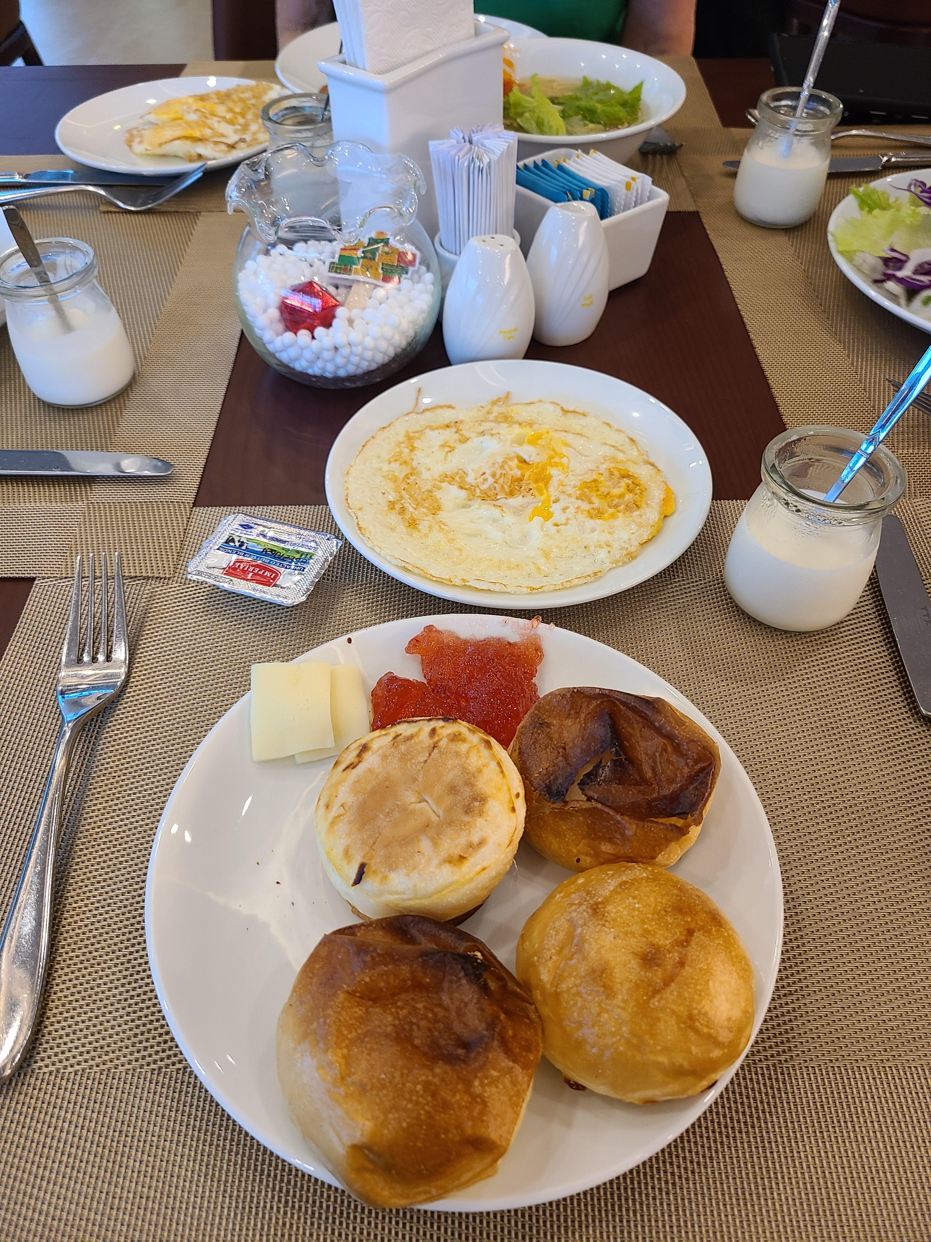 2일차 조식. 어제는 모닝빵이 없었는데, 오늘은 모닝빵이 나와서 동생꺼랑 해서 2개씩 구워왔다. 모닝빵 너무 좋지ㅠㅠ 그리고 여기는 요거트 꼭 먹어야한다. 신선하고 상큼하니 입가심용으로 너무 좋았다구! 레갈리아 골드 호텔 가시는 분들! 요거트 꼭 챙겨드세요 꼭!!!